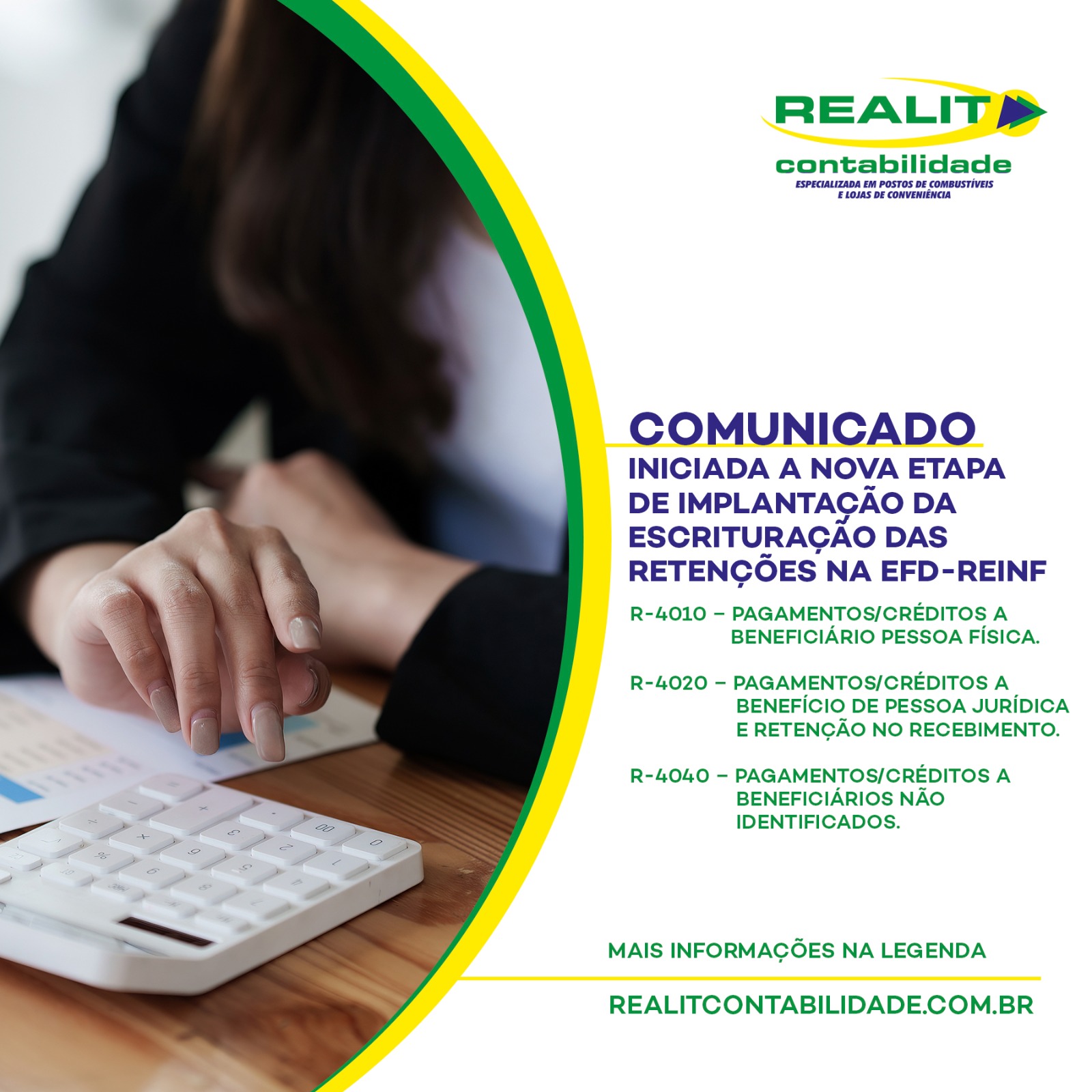 Iniciada a nova etapa de implantação da escrituração das retenções na EFD-Reinf, relativas aos fatos geradores ocorridos a partir de 01 de setembro de 2023.